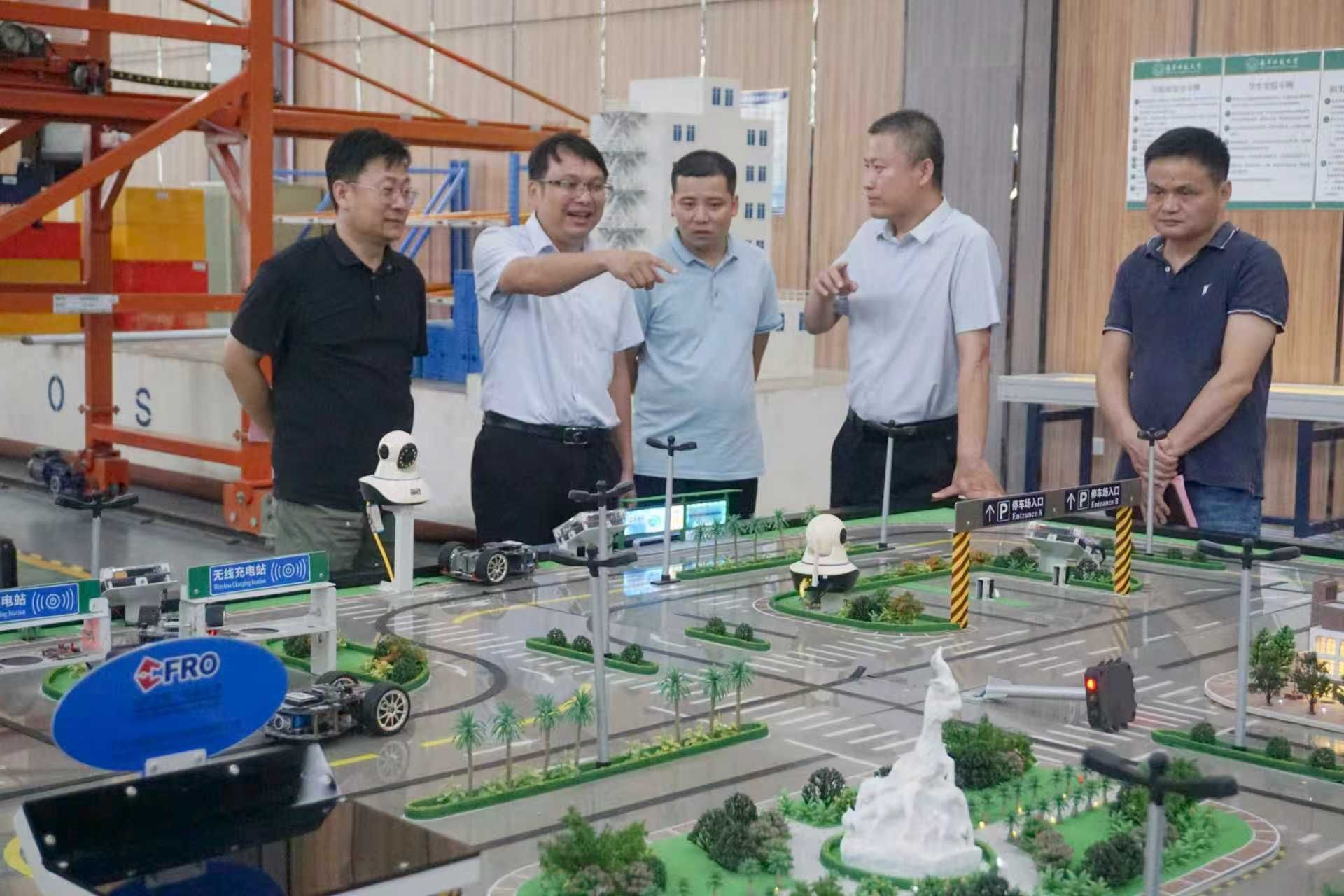 智慧物流实训中心。张培铭副总经理一行详细了解了各模块功能,重点观看了智能交通沙盘的城市物流配送动态演示,并鼓励中心持续推动产教融合,对接企业需求,为学生提供更贴近实际的实践平台,助力应用型人才培养。