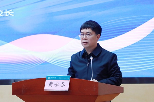 广西职业技术学院校长黄永春在致辞中回顾了共同体一年来从“无”到“有”、从“有”到“优”的发展历程。他强调,共同体紧密围绕服务中国—东盟命运共同体和西部陆海新通道建设国家战略,整合政、行、企、校多方资源,构建起协同联动的产教融合生态圈,持续推动人才培养、技术创新与国际合作迈上新台阶。