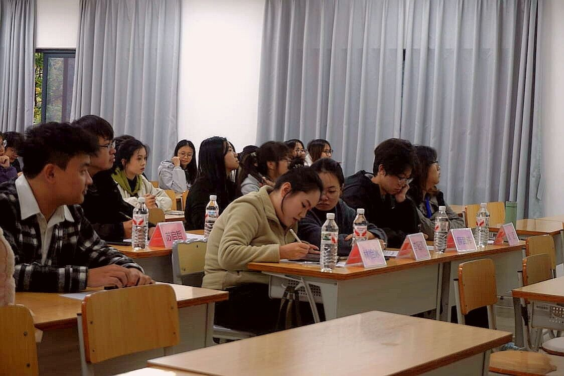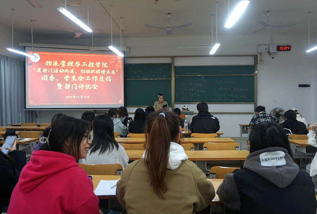 于11月18日下午在实验楼2-C104教室,召开2025年度团委、学生会工作总结暨部门评优会。学院团委、学生会全体常委及各部门负责人参会,会议由秘书长林怡冰主持。