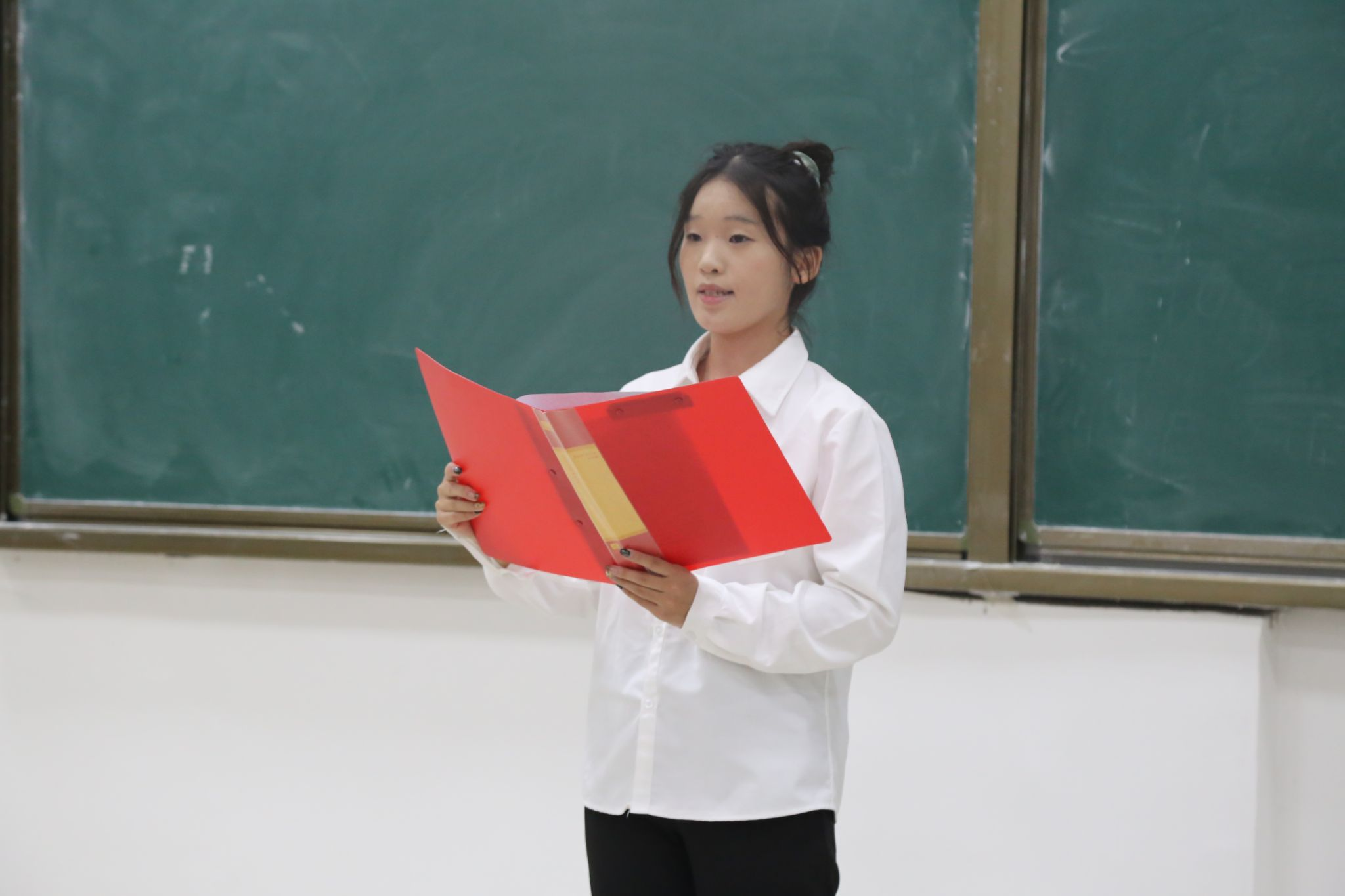 仪式在庄严的国歌声中拉开序幕。主持人黄炫皓同学现场宣读了新发展的26名团员名单。随后,黄奔月老师与团委副书记们共同为新团员佩戴团徽,标志着他们正式成为共青团的一员。在宣誓环节,全体新团员面向团旗,右手握拳,在黄奔月老师的领誓下庄严宣誓。